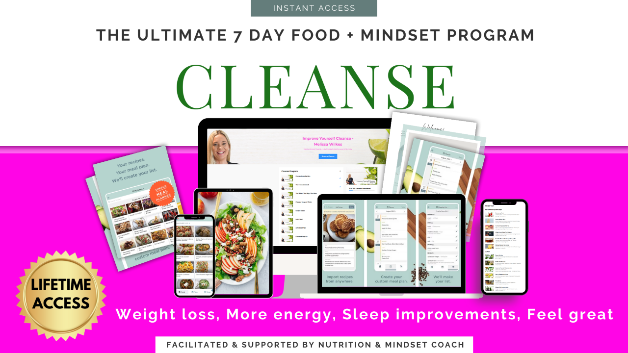 Meal PlannerNutritional informationHolistic daily wellness ritualsLifetime access to future cleanses!